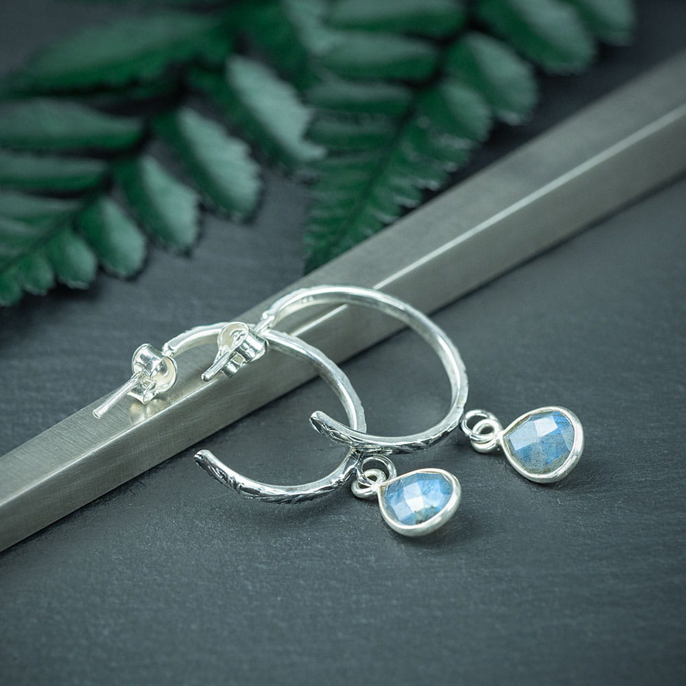 Materiały: labradoryt fasetowany, srebro próba 925.