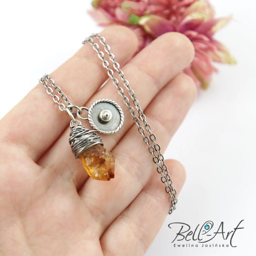 Wymiary: cytryn 2 cm, ozdobne kółko 1,2 cm, łańcuszek 46 cm.