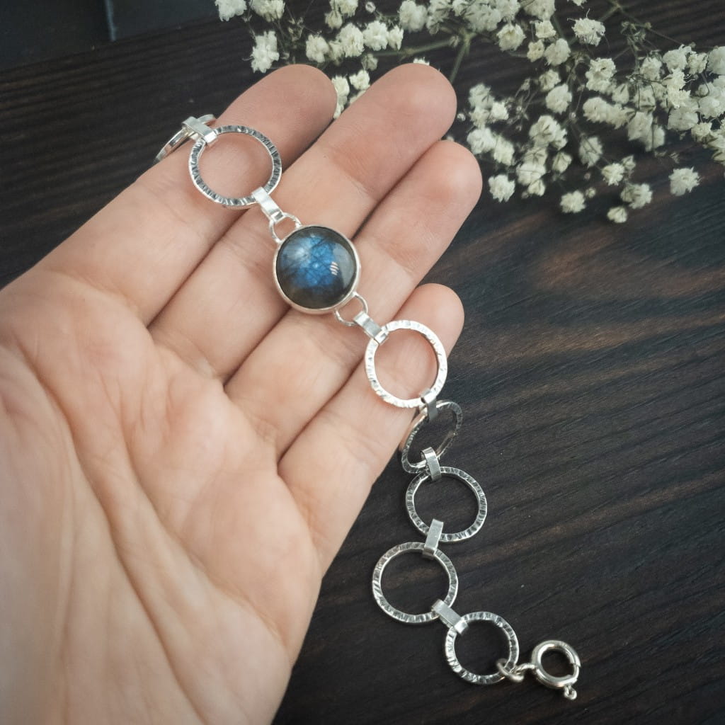 Bransoleta z labradorytem i zdobionymi kołami na zamówienie