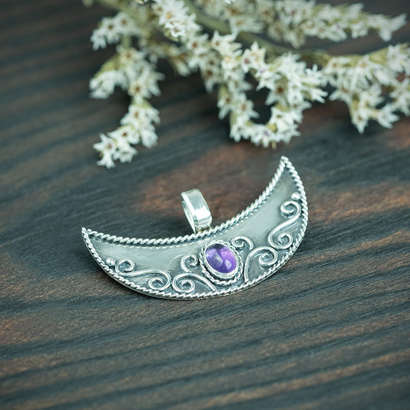 Bransoletki z koralem i turkusem oraz wisior księżyc z ametystem