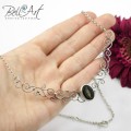 Wymiary: kwarc dymny - 14x10 mm, szerokość elementu ażurowego - 10 cm, dł. całkowita łańcuszka - 2 x 17,5 cm. Na życzenie łańcuszek mogę przedłużyć.