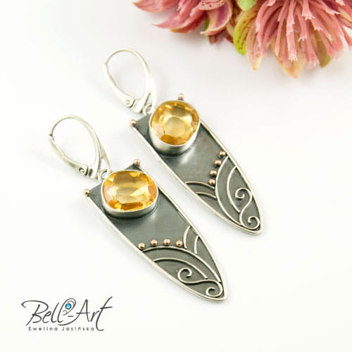 Materiał: cytryn fasetowany, złoto pr 585, srebro pr 925 i 999.