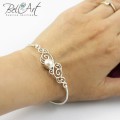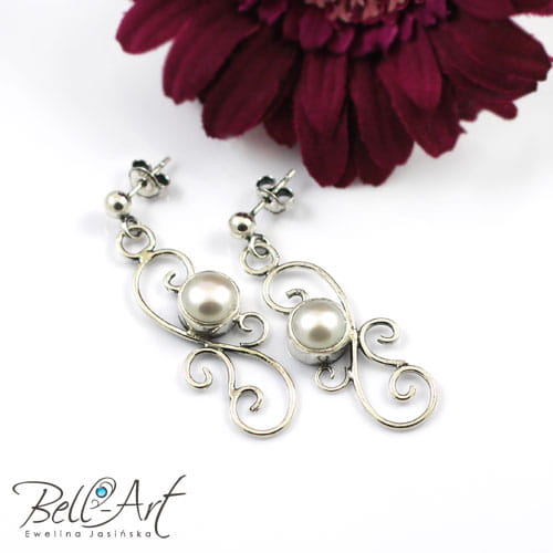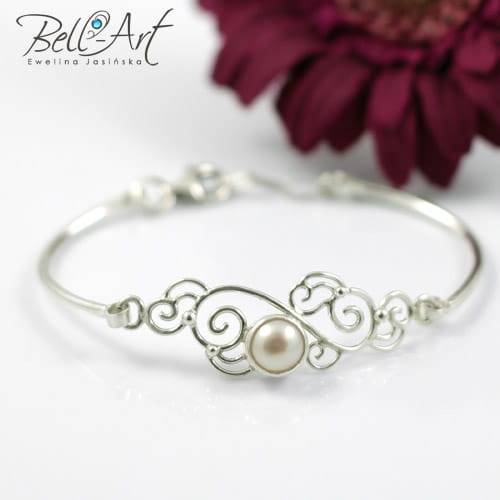 Komplet składa się z bransoletki i kolczyków. Wykonany jest ze srebra próby 925 i 999 oraz naturalnych pereł.