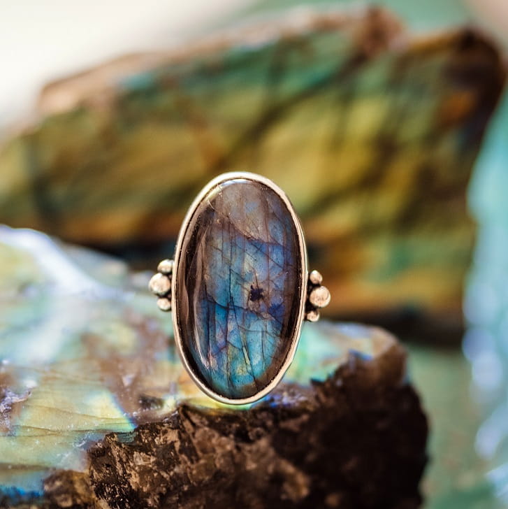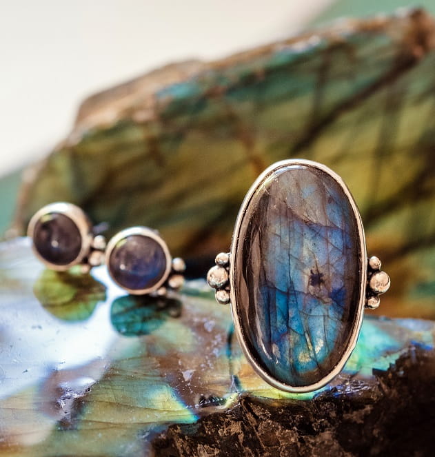 Komplet biżuterii z labradorytem wykonany na zamówienie.