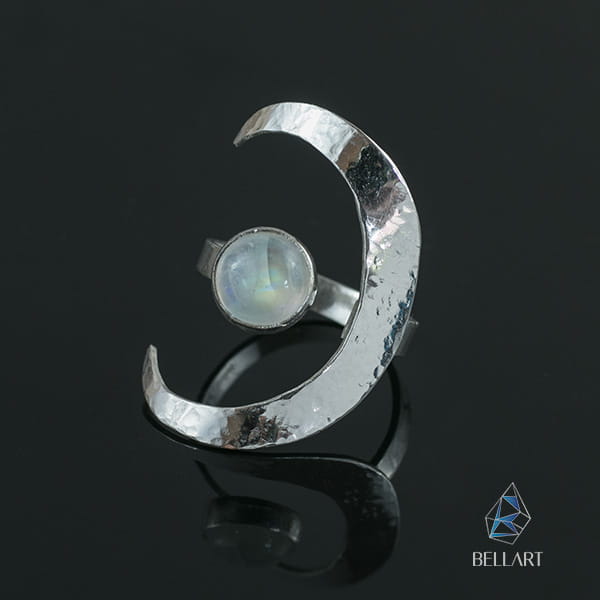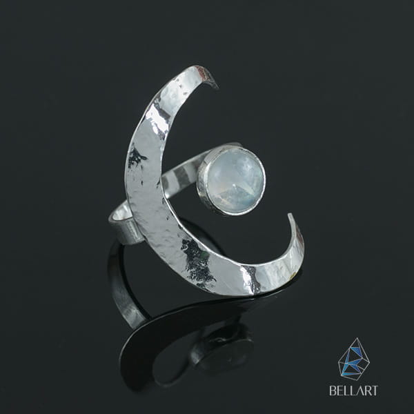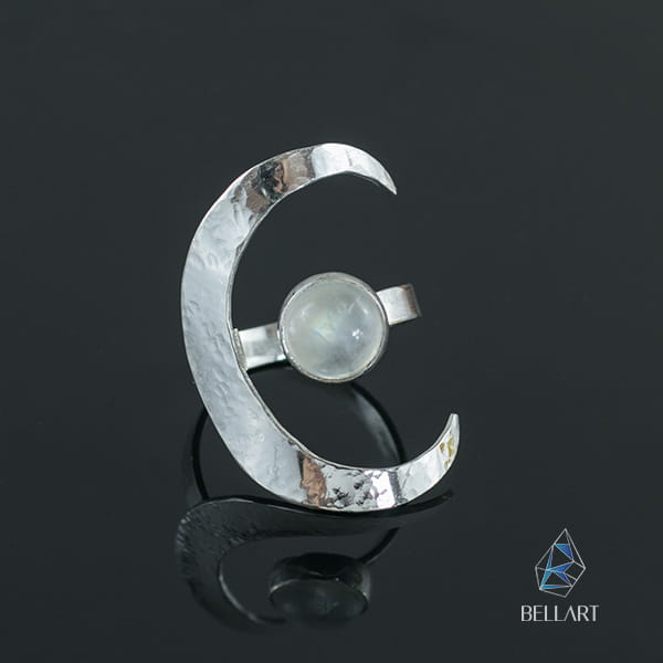 Srebrny pierścionek w kształcie księżyca wykonany na zamówienie Pani Eugenii.