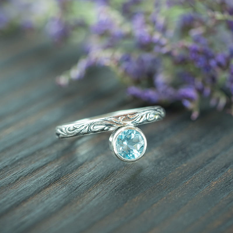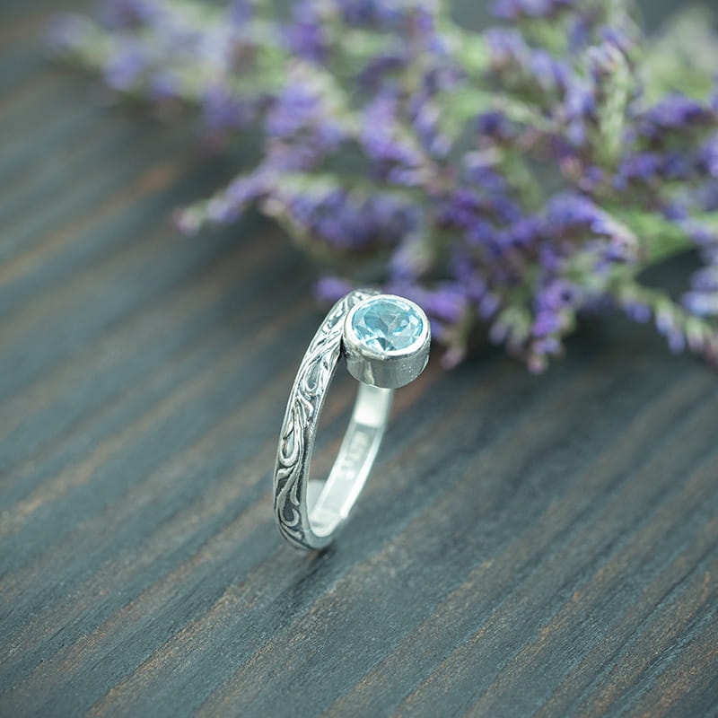Remi - pierścionek z topazem błękitnym i zdobioną obraczką