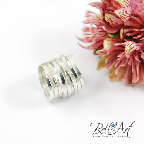 Srebrna obrączka w kształcie sprężyny, wykonana na wzór poprzedniej obrączki dla Pani Anny.