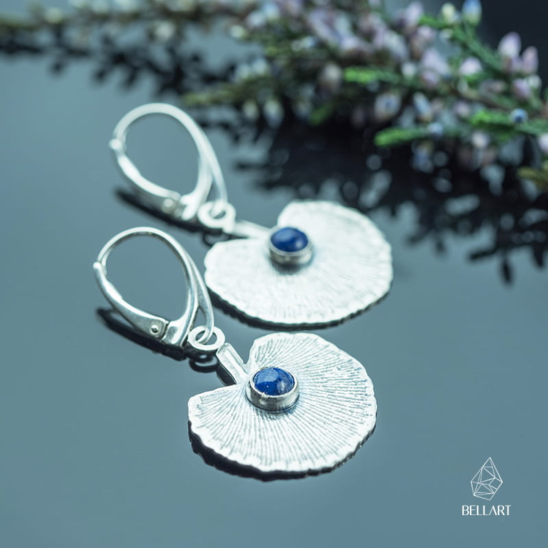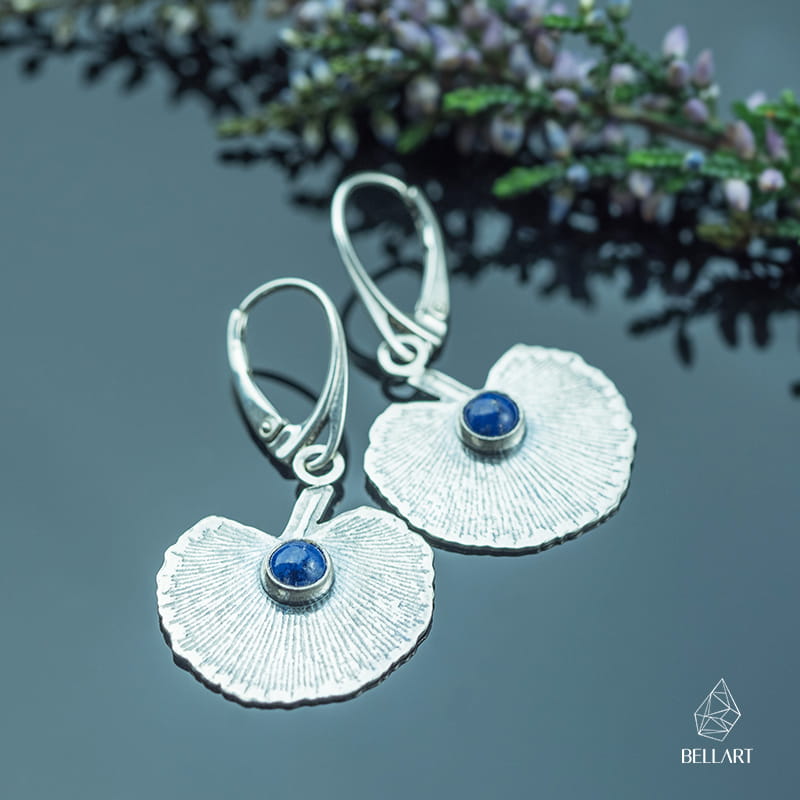 Srebrne kolczyki liście z lapis lazuli