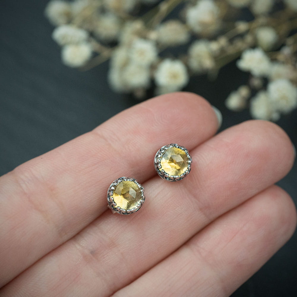 Srebrne kolczyki - sztyfty z cytrynem w ozdobnej oprawie, wykonane na zamówienie