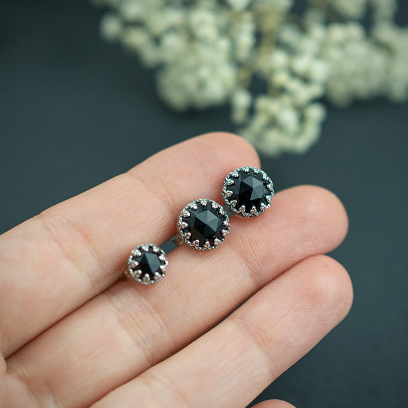 Wymiary: onyks czarny 6 i 8 mm, średnica całości ok. 8i 10 mm.