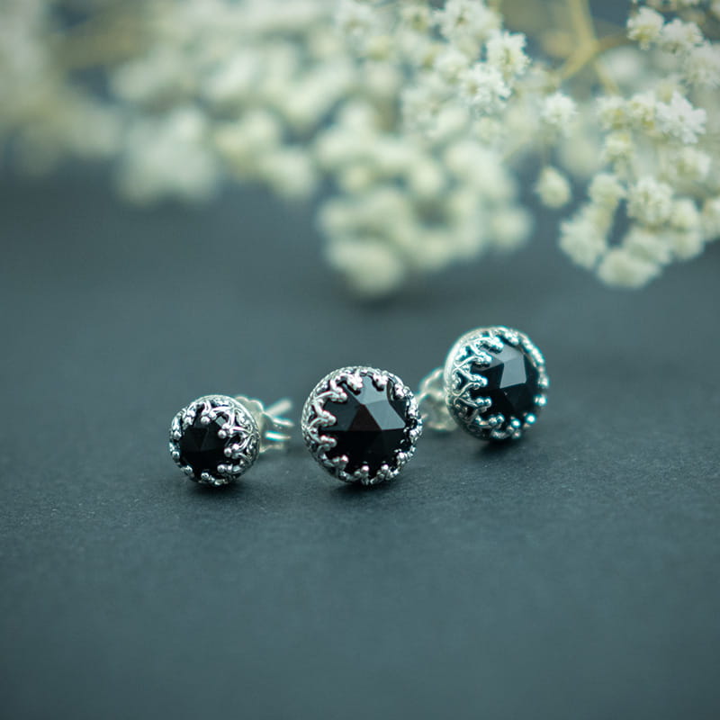 Srebrne sztyfty z czarnym onyksem w koronkowej oprawie