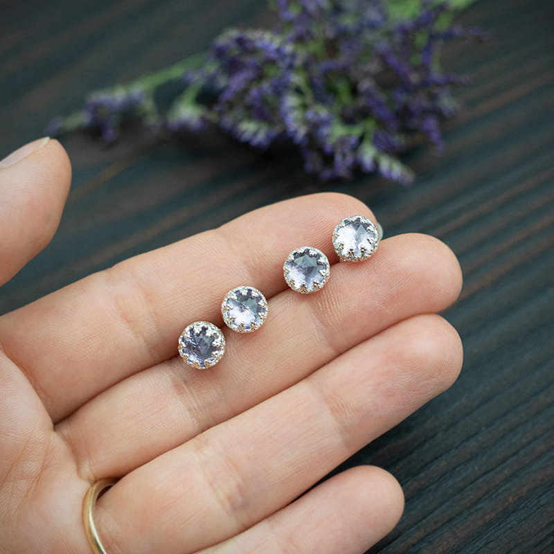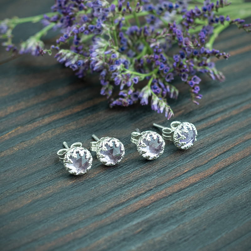 Srebrne sztyfty z lawendowym ametystem