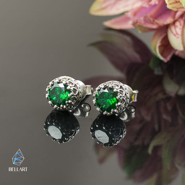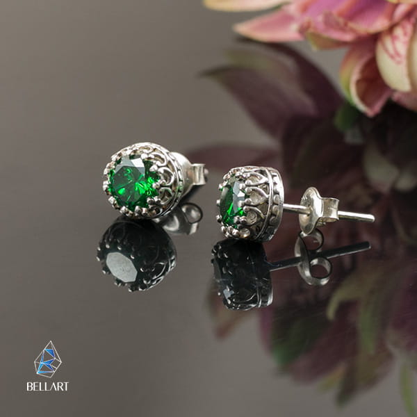Srebrne sztyfty ze szmaragdowymi cyrkoniami wykonane na zamówienie Pani Beaty.