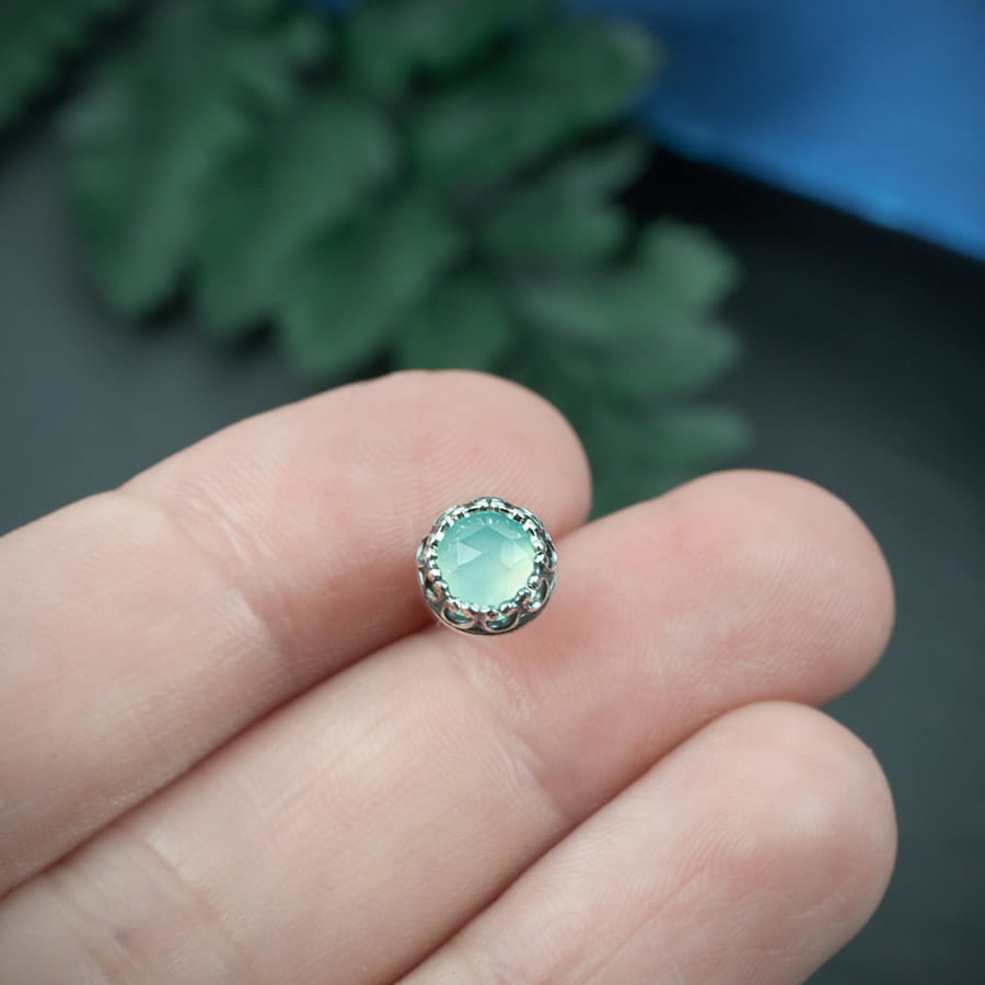 Srebrny kolczyk z chalcedonem miętowym na zamówienie
