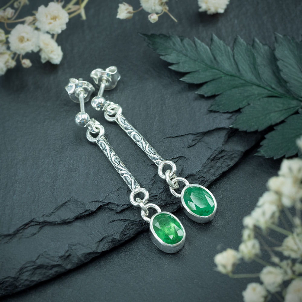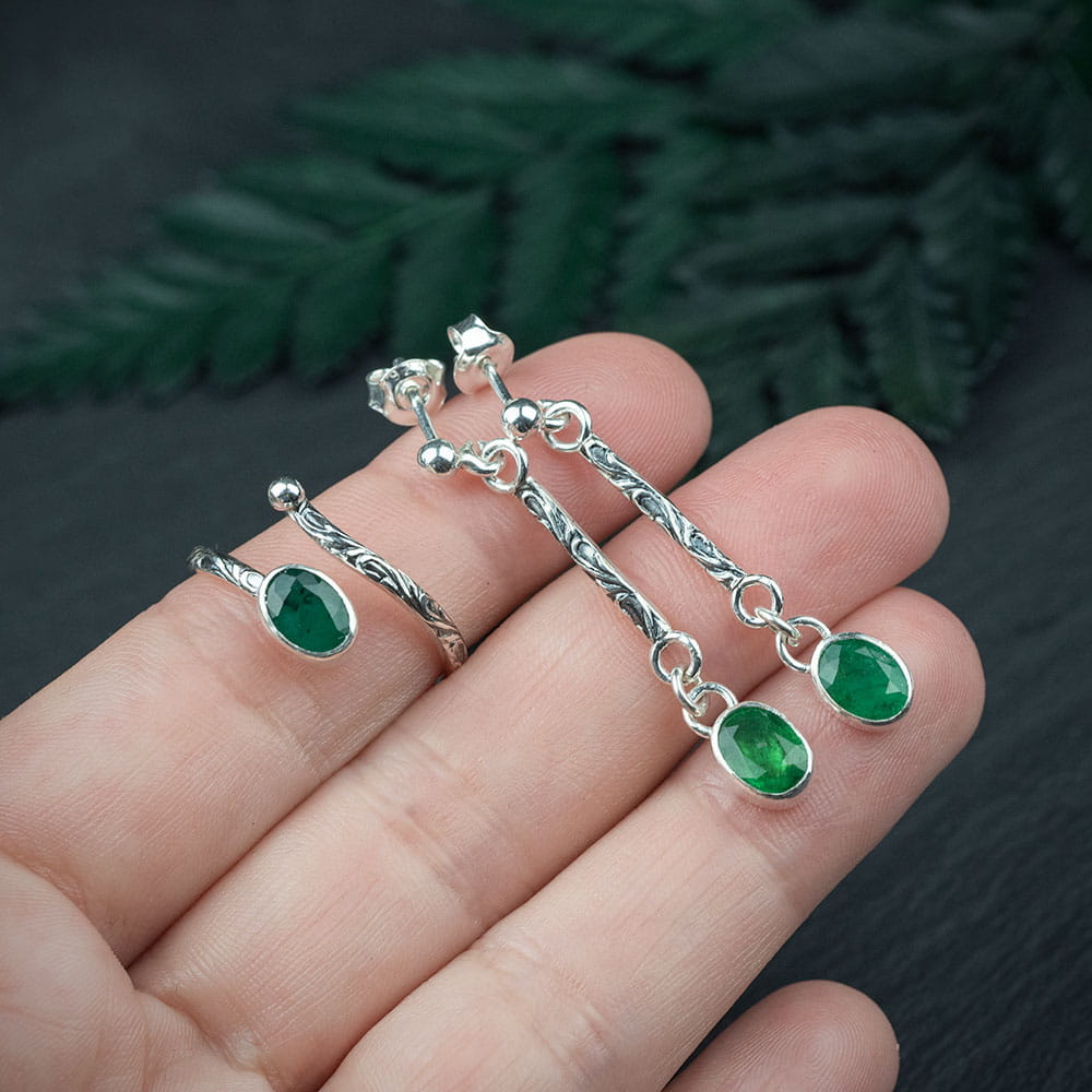Srebrny komplet biżuterii Flora ze szmaragdem