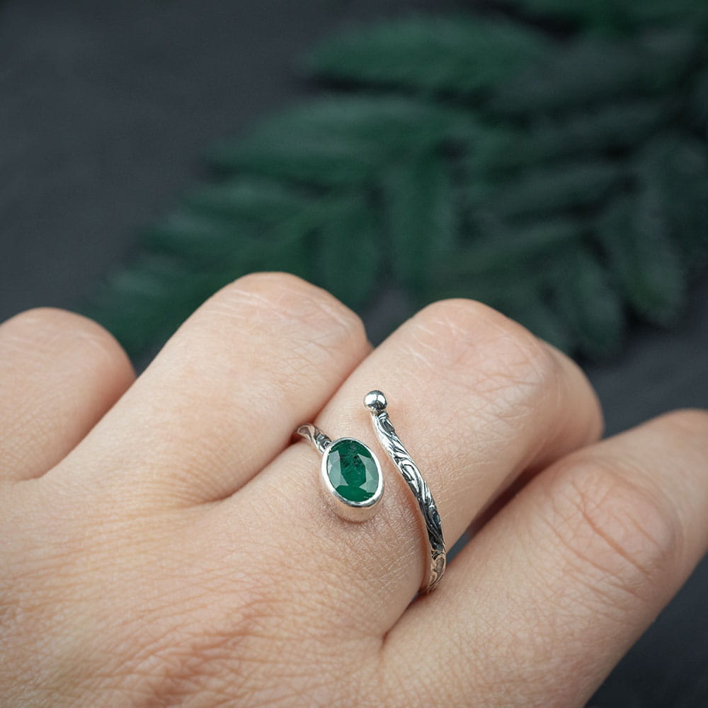 Srebrny komplet - pierścionek i kolczyki ze szmaragdem i wzorem Flora, na zamówienie Pana Cezarego