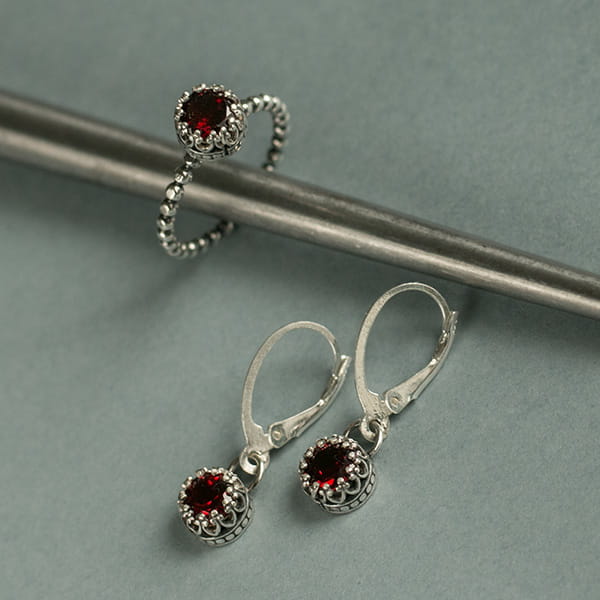 Srebrny komplet z granatem wykonany na zamówienie Pani Doroty.