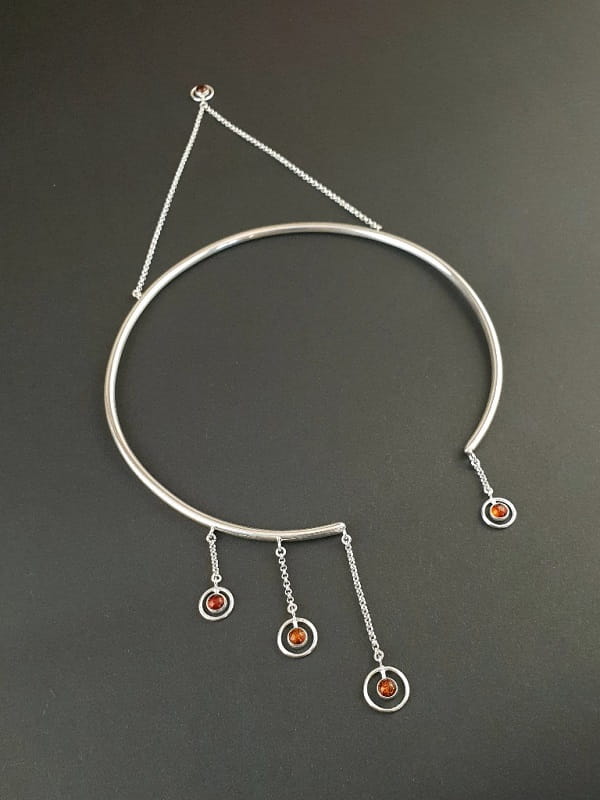 Materiały: bursztyn naturalny bałtycki, srebro próby 925 i 999.