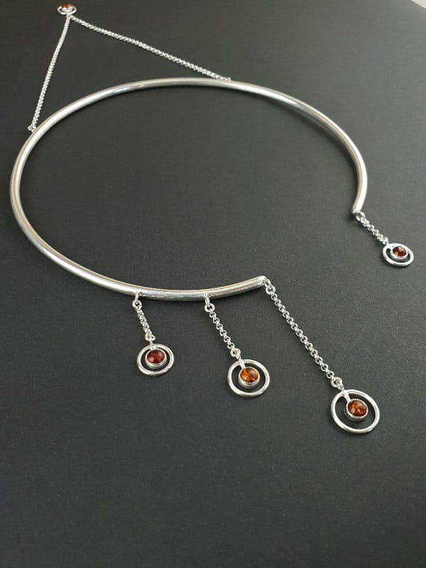 Srebrny naszyjnik - kolia z bursztynami wykonany na zamówienie Pani Kingi.