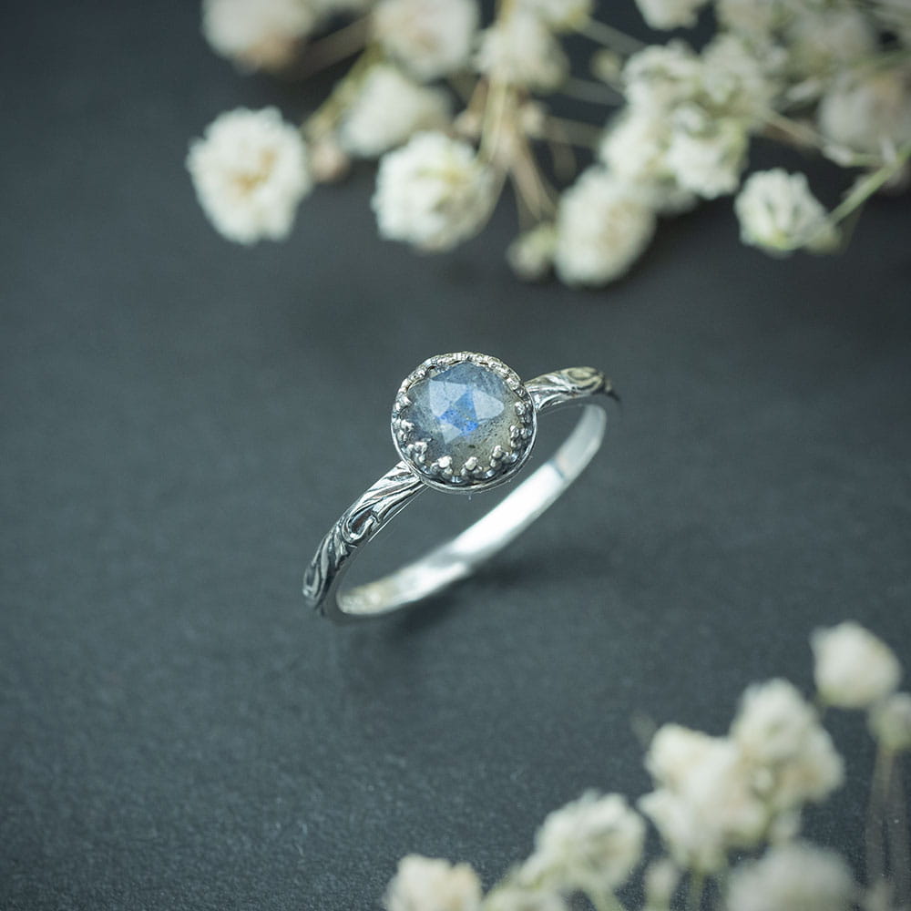 Srebrny pierścionek Flora z labradorytem na zamówienie