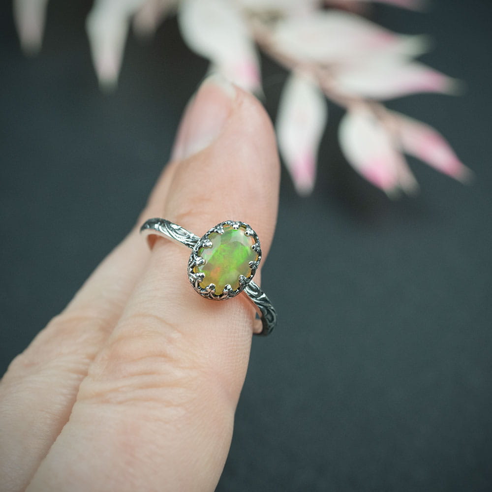 Srebrny pierścionek Flora z opalem na zamówienie