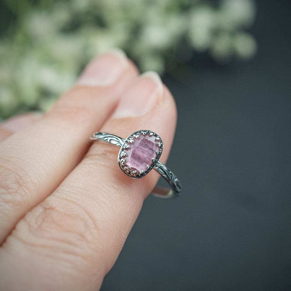 Srebrny pierścionek z turmalinem zdobiony motywem Flora, na zamówienie Pani Katarzyny
