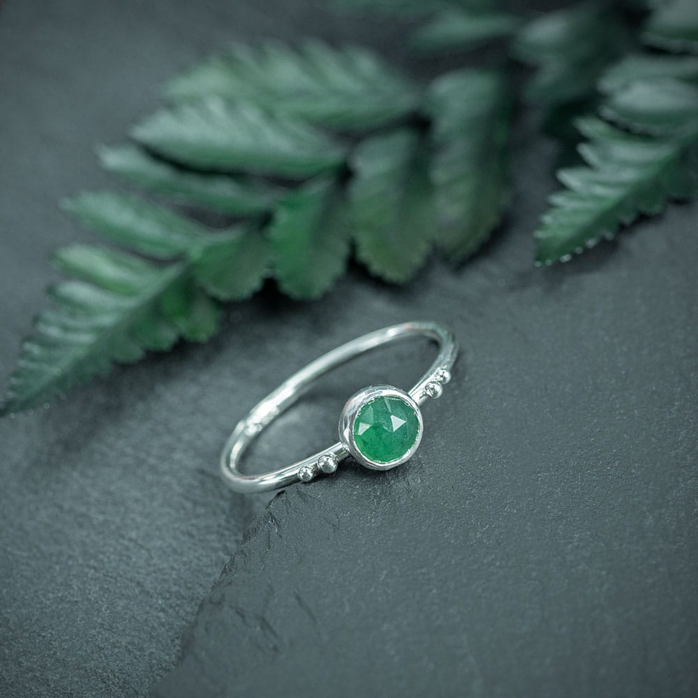Delikatny srebrny pierścionek z awenturynem i kuleczkami na zamówienie Pani Emilii