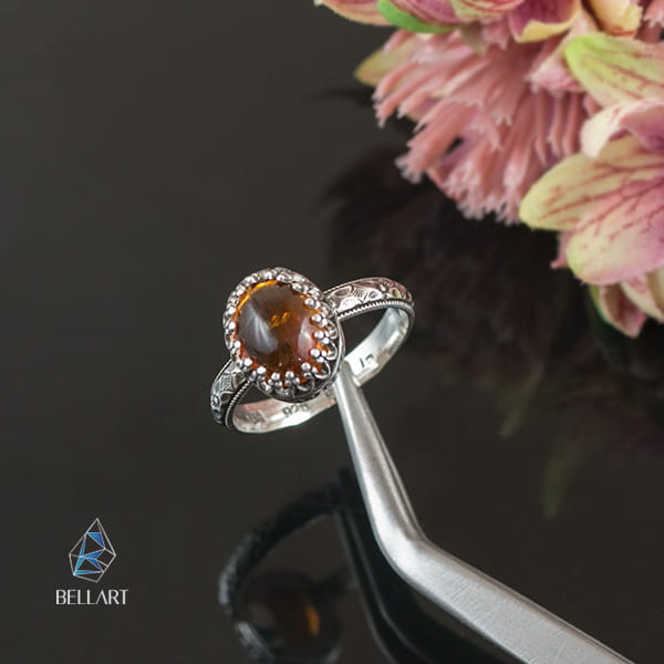 Srebrny pierscionek z bursztynem