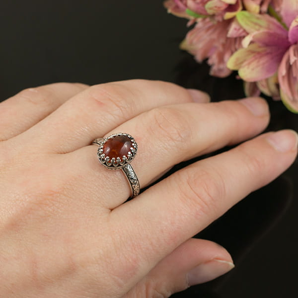 Srebrny pierścionek z bursztynem wykonany na zamówienie Pani Beaty