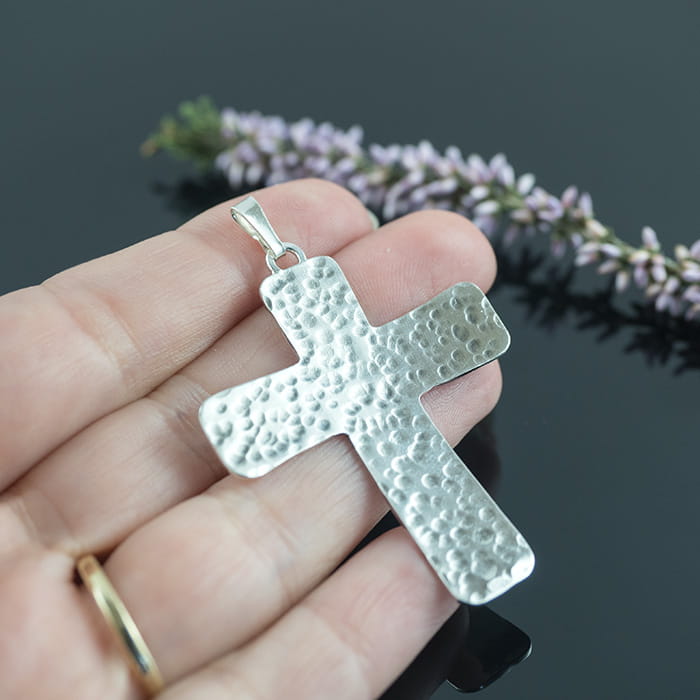 Srebrny wisior w kształcie krzyża wykonany na zamówienie Pani Beaty.