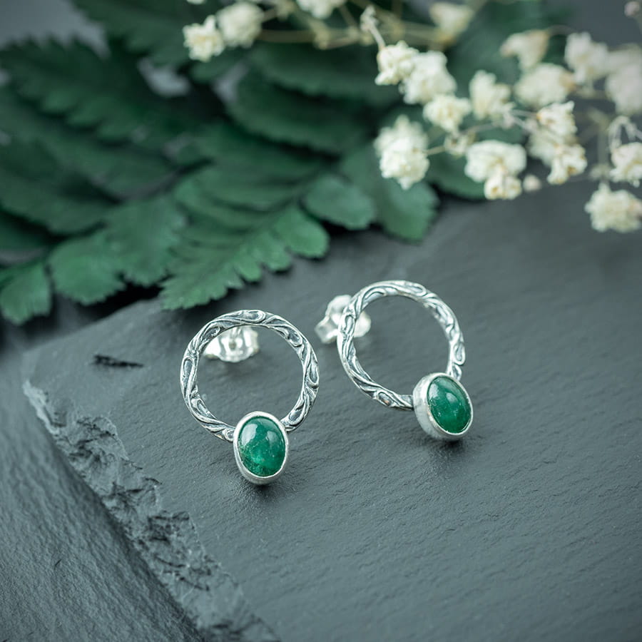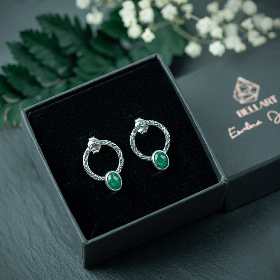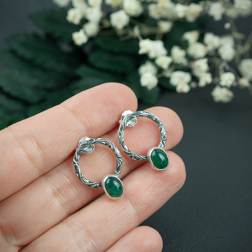 Sztyfty koła ze szmaragdami ozdobione wzorem Flora