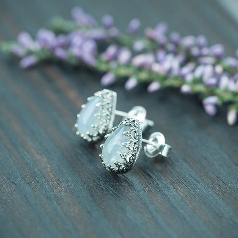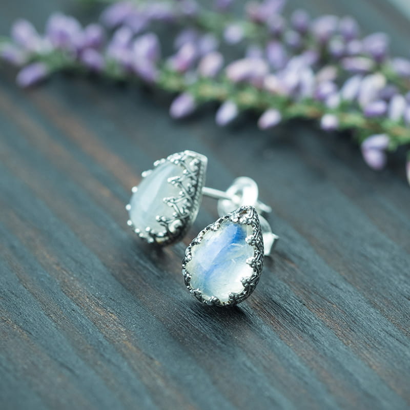 Wymiary: kamień księżycowy 10x7 mm, całość 11x8 mm.