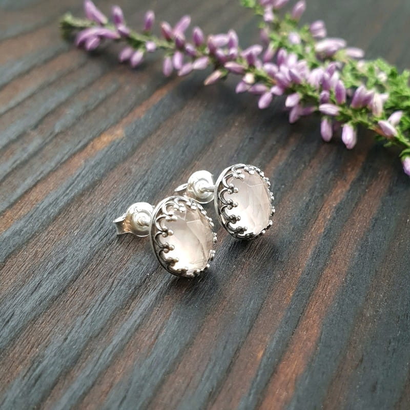 Srebrne sztyfty z kwarcem różowym do kompletu z naszyjnikiem wykonane na zamówienie Pani Małgorzaty.