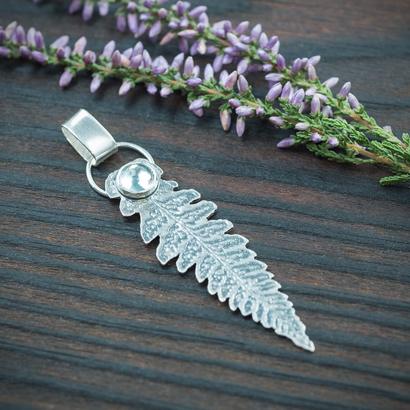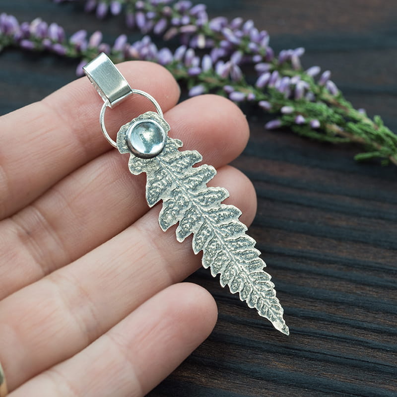Srebrny wisior liść paproci z topazem na zamówienie Pani Kasi.