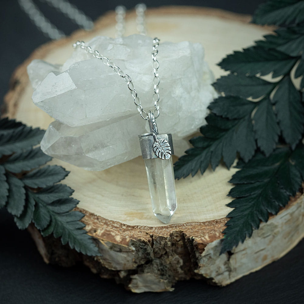 Wisior z kryształem górskim i listkiem monstery na zamówienie
