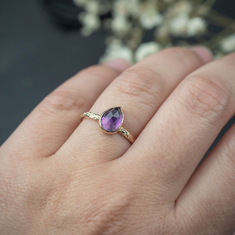 Złoty pierścionek Flora z ametystem na zamówienie
