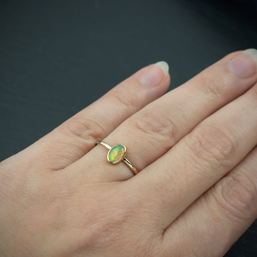 Złoty pierścionek z owalnym opalem na zamówienie