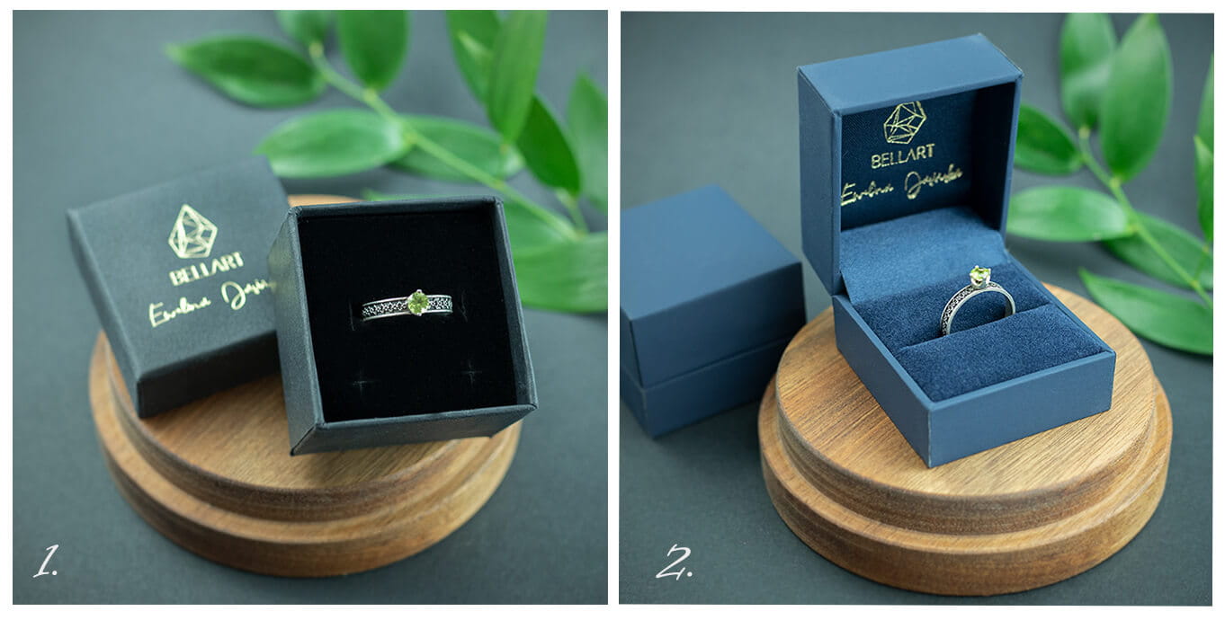 Wymiary: fasetowany szmaragd ok. 6x5 mm, szerokość obrączki ok. 1.8-2 mm, rozmiar jubilerski 13 (średnica wewn. ok. 16.8 mm).